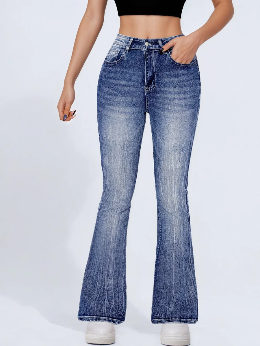 【HME】Casual Jeans with Embroidered Wings Women’s Casual Jeans – Embroidered Wings, Back Pocket Details, Beard