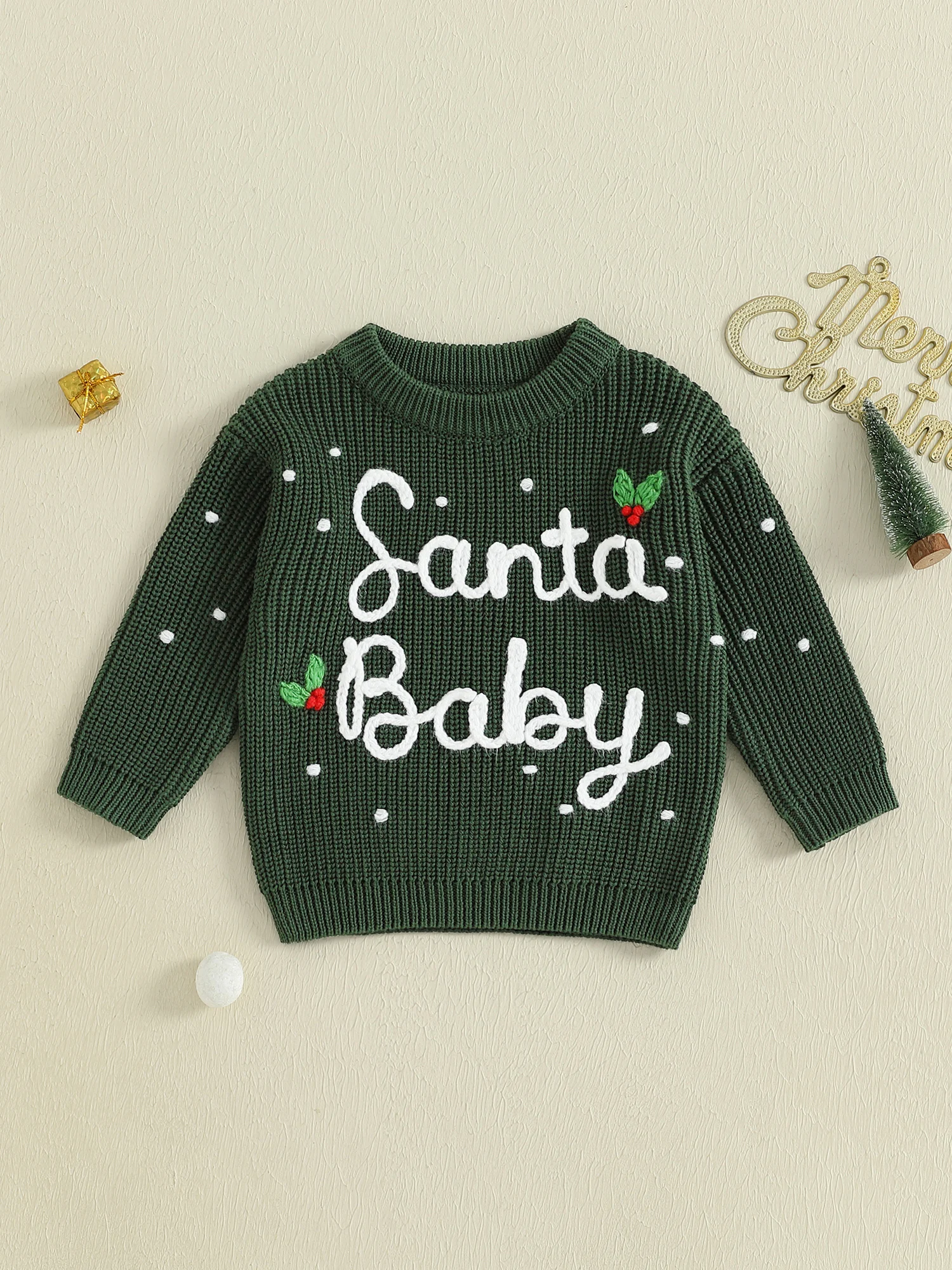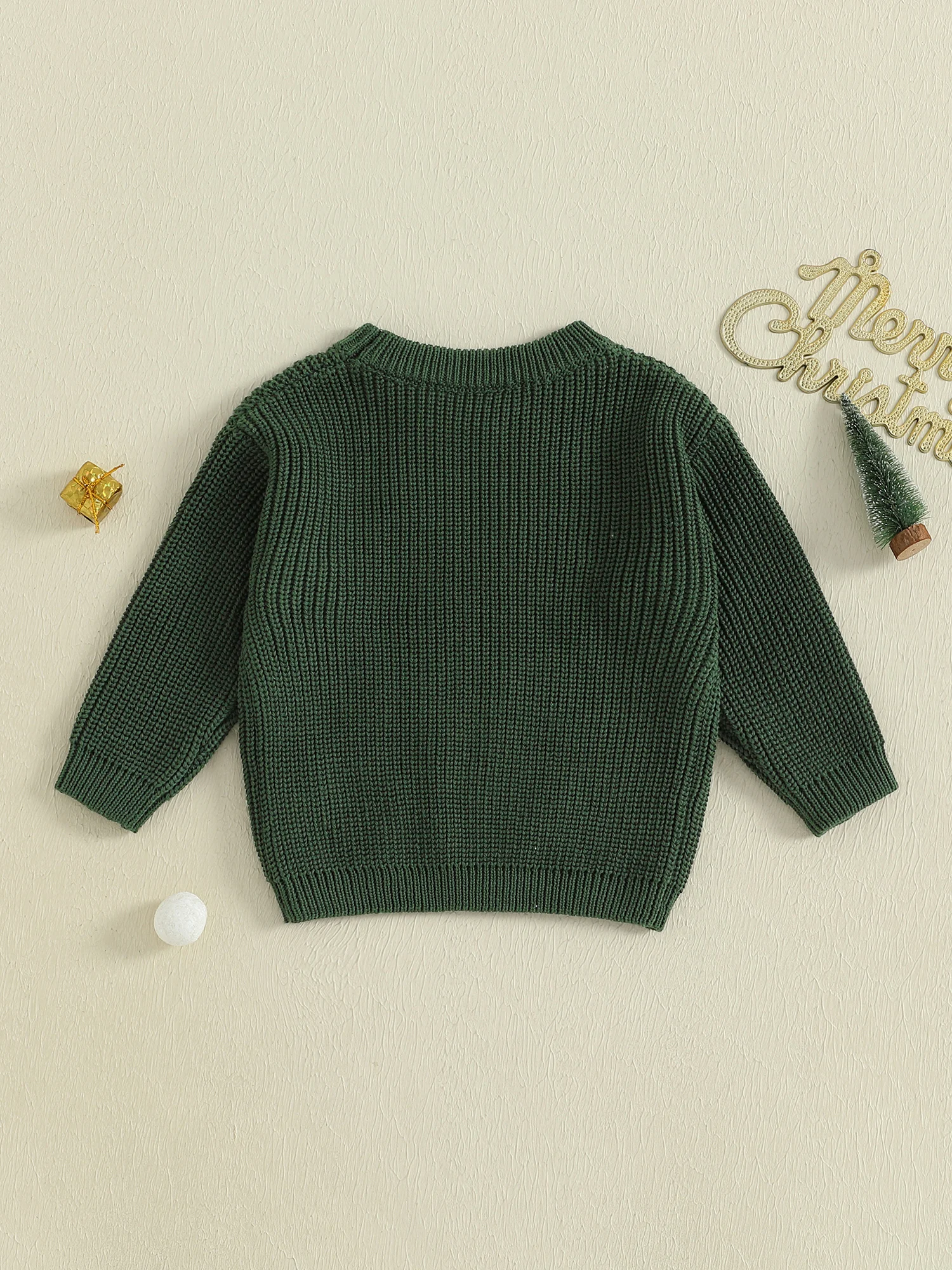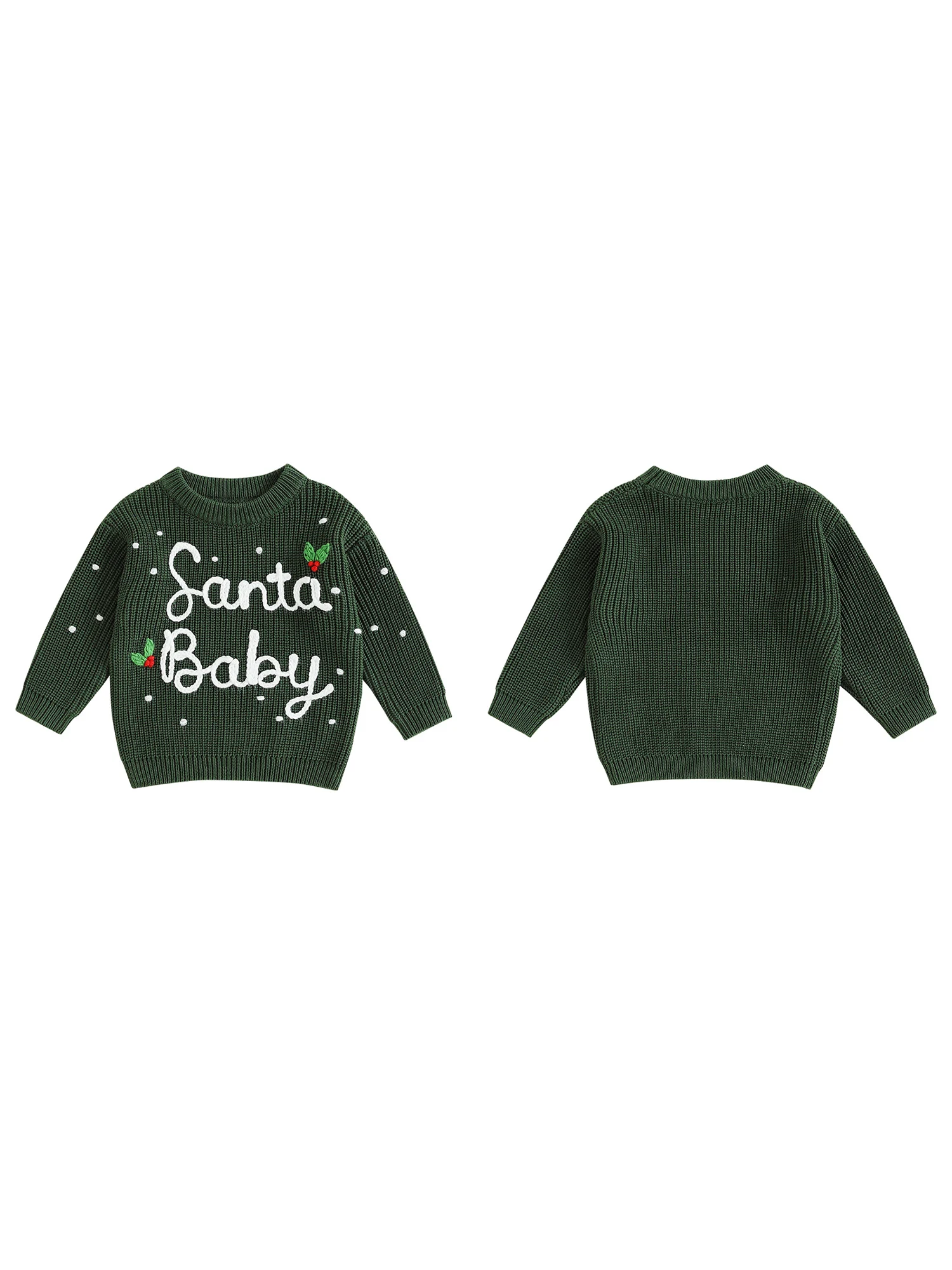Little Boy Girl Christmas Sweater Letter Embroidered Crew Neck Long Sleeve Pullover Chunky Knit Tops Baby Winter Clothes