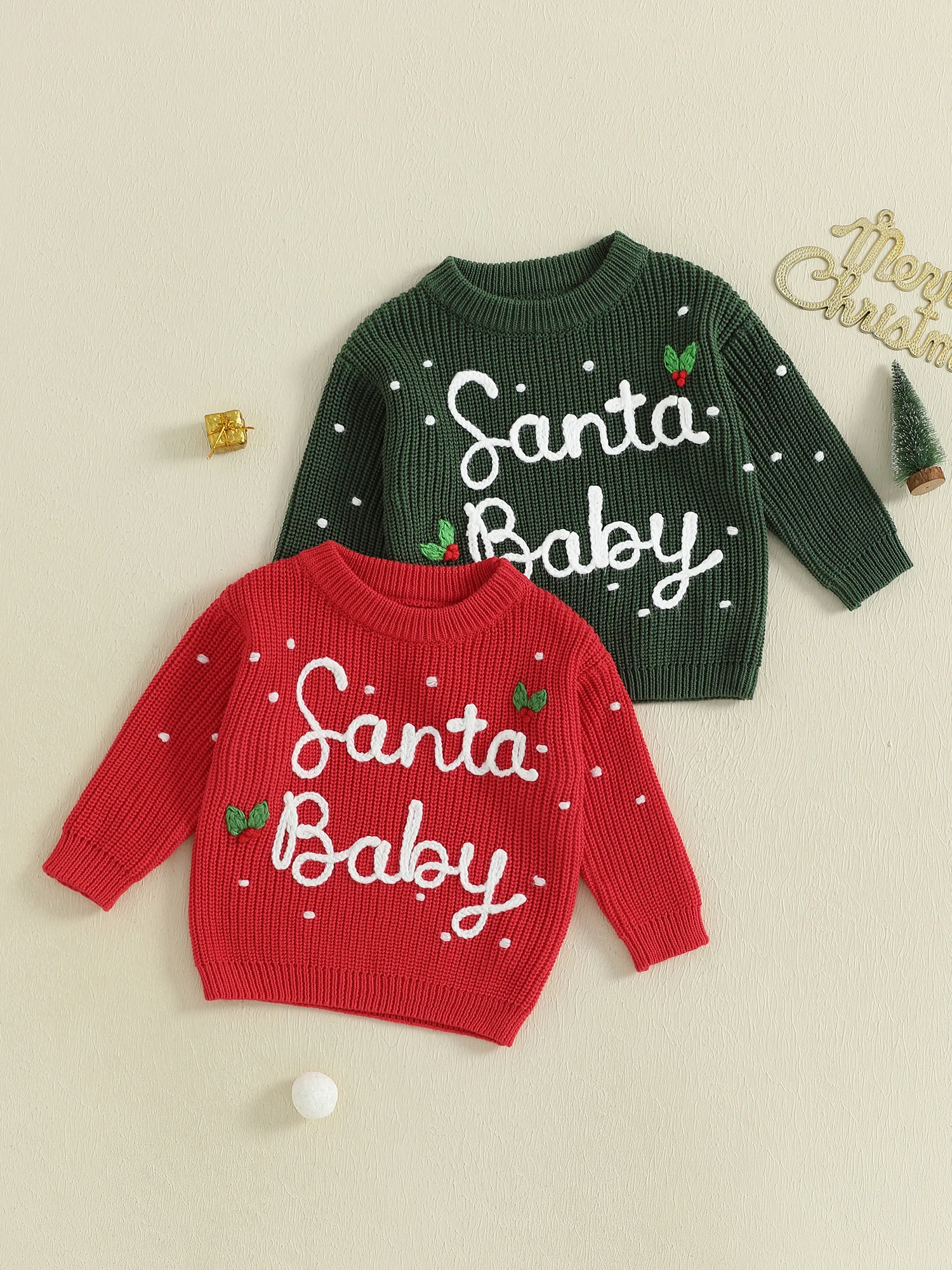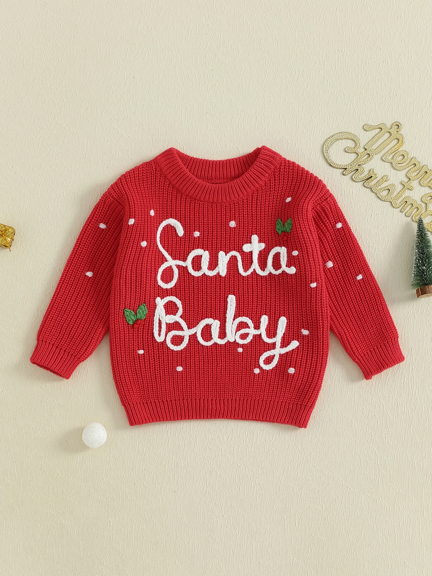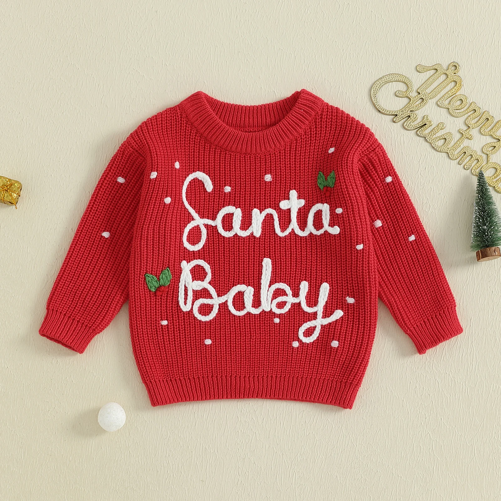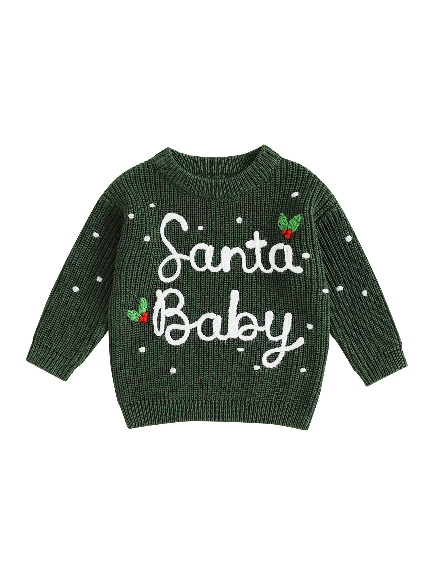 Little Boy Girl Christmas Sweater Letter Embroidered Crew Neck Long Sleeve Pullover Chunky Knit Tops Baby Winter Clothes