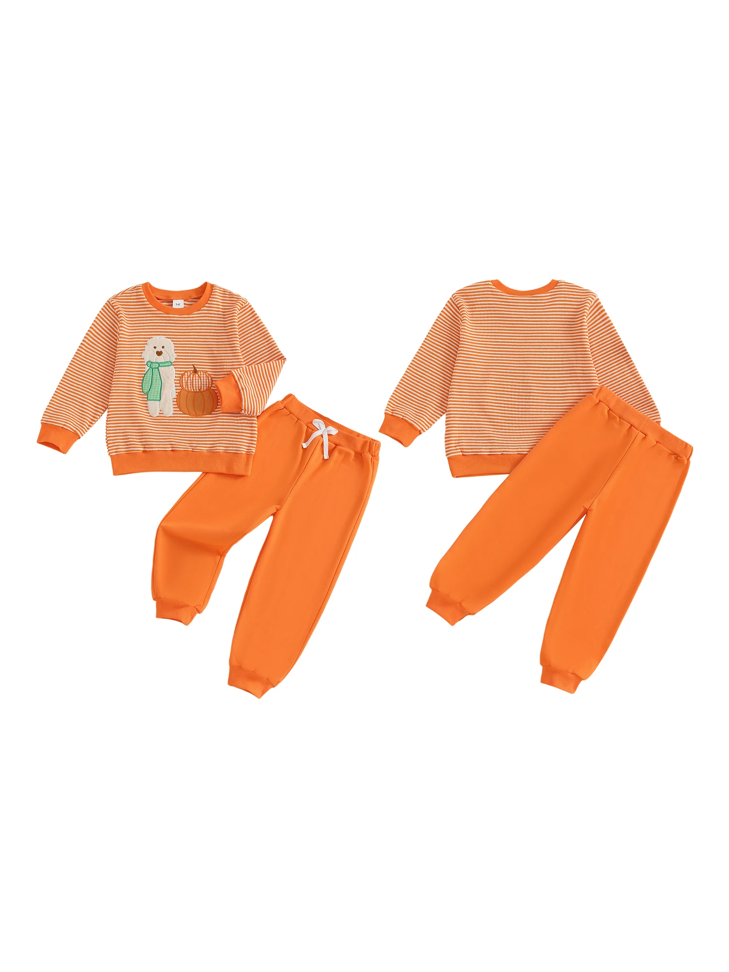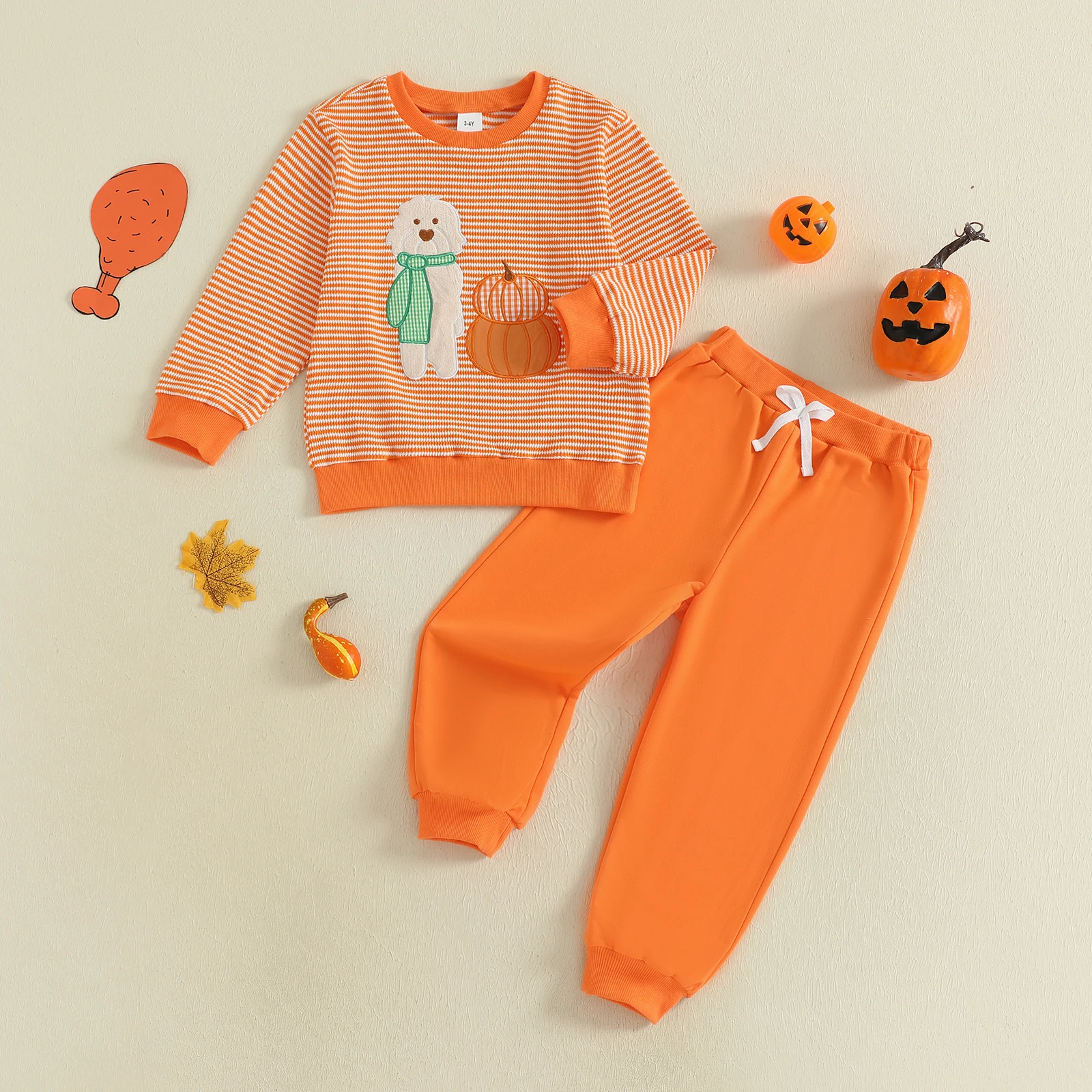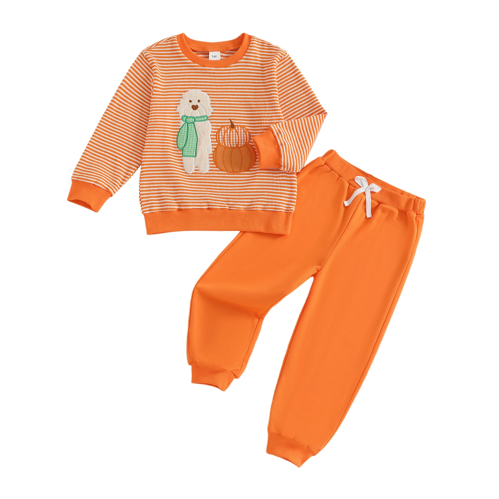 Baby 2Pcs Halloween Outfits Long Sleeve Puppy Embroidery Pullover Tops + Pants Set Toddler Clothes