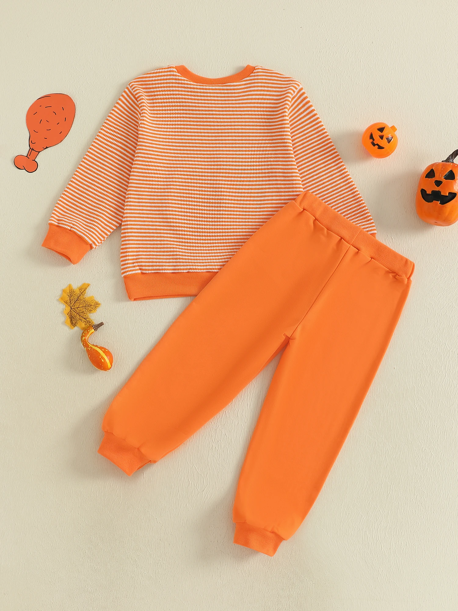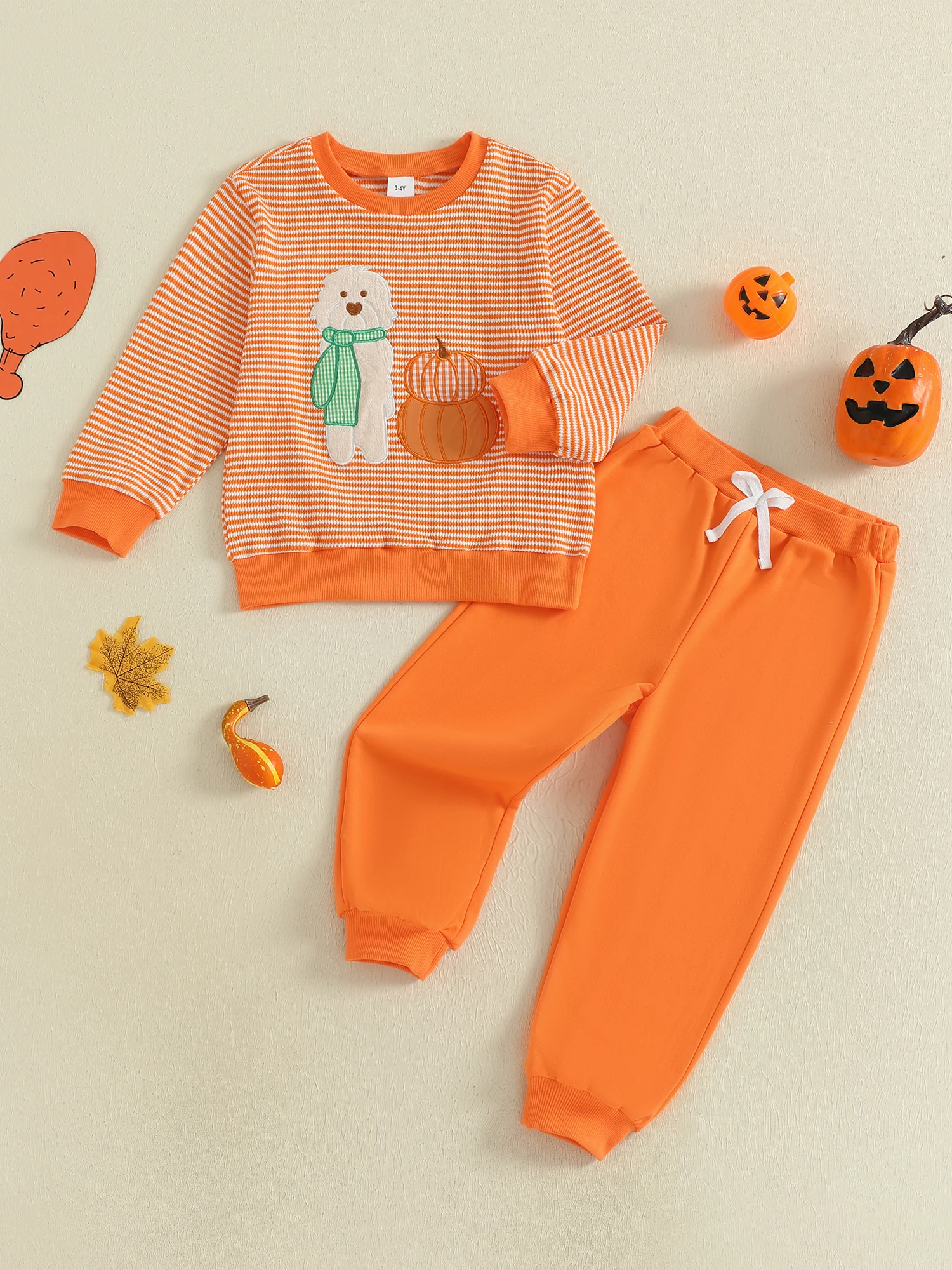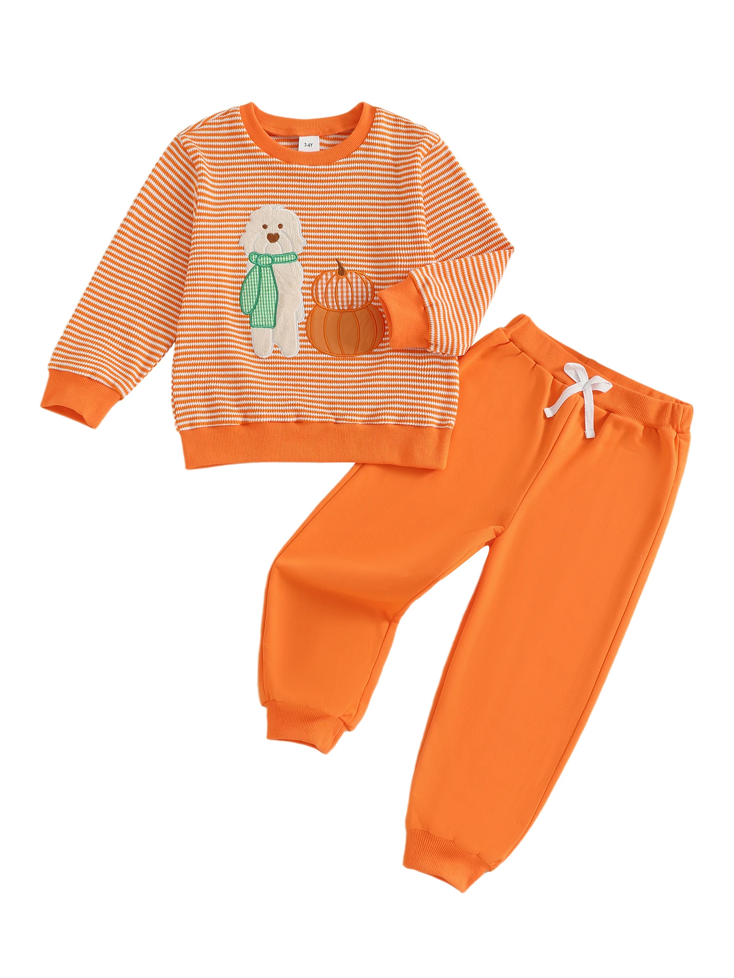 Baby 2Pcs Halloween Outfits Long Sleeve Puppy Embroidery Pullover Tops + Pants Set Toddler Clothes