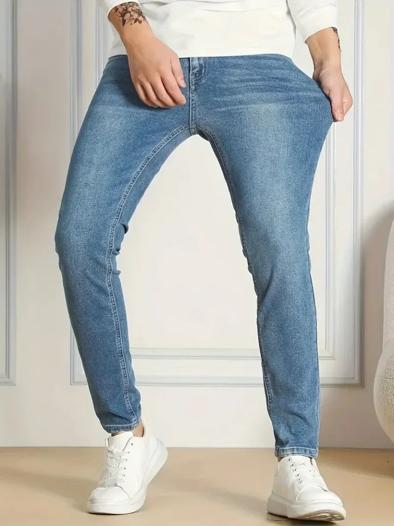 这款牛仔裤以经典而富有层次的蓝色调呈现,柔和的光泽中透出复古韵味与现代时尚感。其精髓在于恰到好处的修身剪裁,线条流畅利落,能够自信地贴合腿部轮廓,巧妙修饰腿型,轻松勾勒出男士利落干练的身姿,展现出无可挑剔的版型魅力。