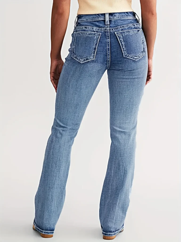 Stylish Flare Jeans: These mid -rise jeans feature a flattering flared silhouette that elongates your legs and adds a touch of retro flair.