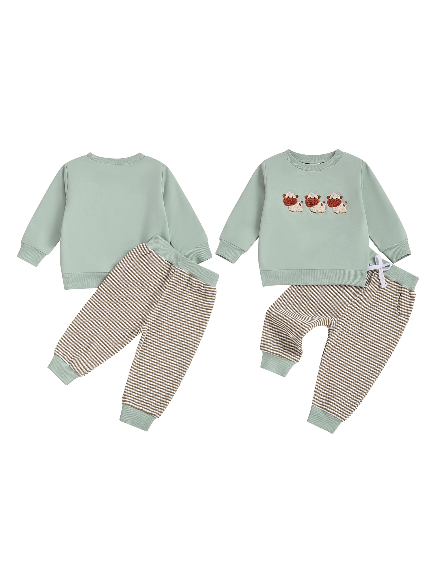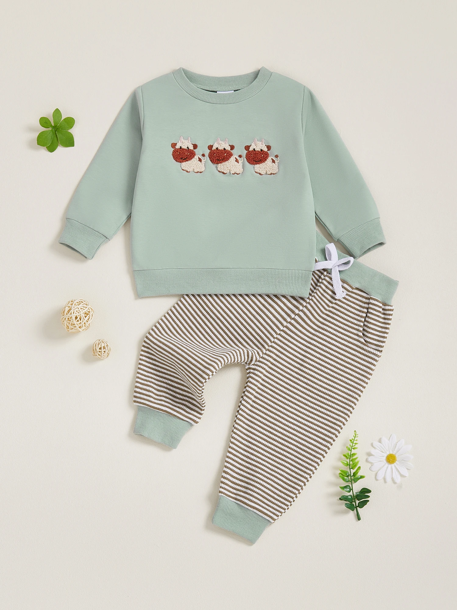Baby Boys Pants Set, Long Sleeve Crew Neck Embroidery Cow Sweatshirt with Elastic Waist Sweatpants Infant Clothes