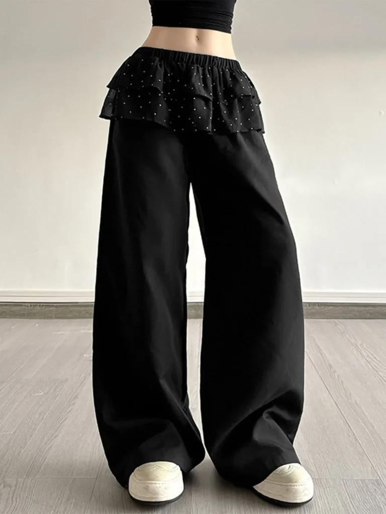 Women’s Spring Summer Baggy Pants Elastic Waistband Low Waist Loose Wide Leg Pants with Fart Curtain