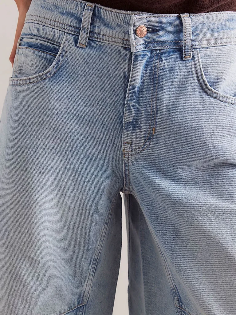 Womens Knee Length Denim Shorts Solid Color Low Waist Wide Leg Jean Shorts for Summer