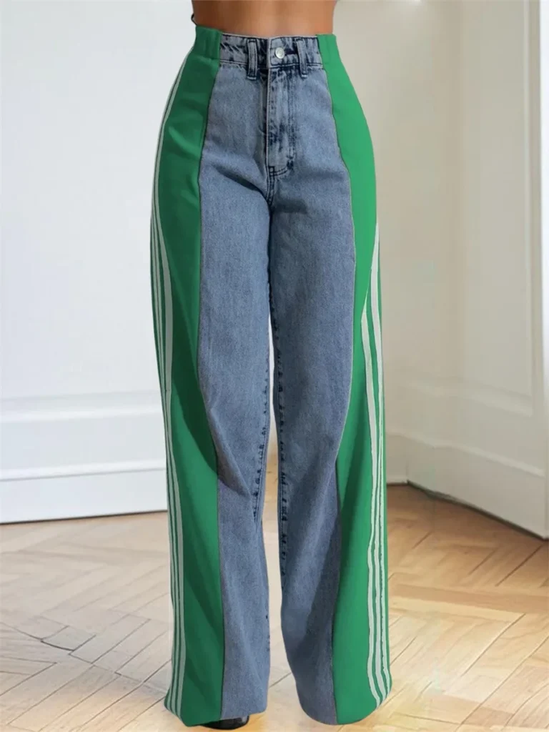 Women’s Spring Baggy Jeans Pants High Waist Loose Wide Leg Side Striped Denim Pants